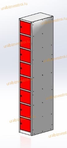 • Модульный шкаф для сумок ШРСо/д-8 имеет стандартную ширину 300 либо 400мм состоит из одной вертикальной секции, 8 ячеек с 8 дверями.